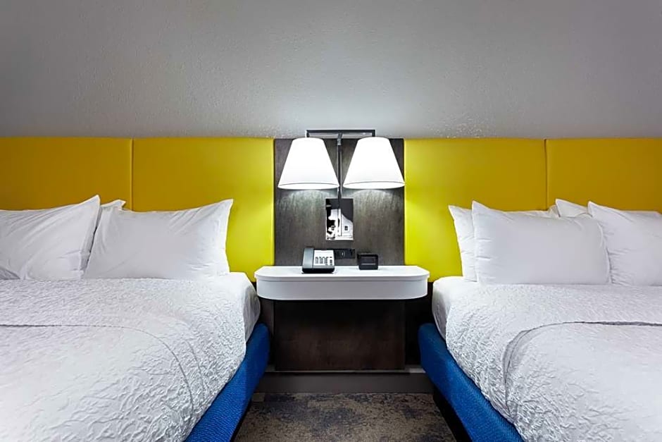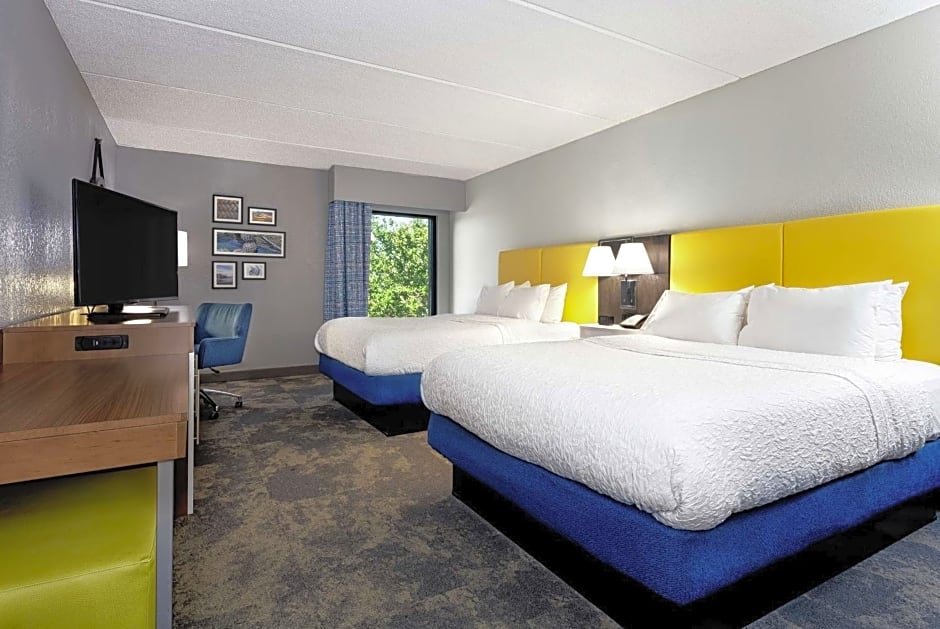 This all new spacious room features a clean and fresh Hampton bed on two luxurious queen-sized beds, comfortable easy chair with ottoman, 25-inch television, easy to operate alarm clock/radio and large work desk. The WiFi access will help you stay connected. If you prefer to relax, work at the convenient lap-desk instead. You'll also enjoy the convenience of having a microwave, refrigerator, coffeemaker and iron/Ironing board in your room. In the bathroom you'll enjoy the extra large vanity area, hairdryer, WaterPik showerhead with a curved shower rod that allows more light and space in the shower. This is a non-smoking room. Any corresponding photo may not reflect the specific accessible room type or room feature.